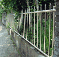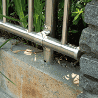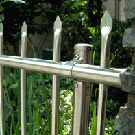 SUS304オールステンレス材を使用したフェンスです。縦桟を通常品より多く使用する事で、猫や犬の侵入や逃走防止も考慮しました。槍タイプと通常タイプの2種類を用意し、商品開発過程で「簡単に取り付けが出来る」事を考え企画しました。部品はしっかり取り付けが出来る様に貫通タイプのネジ止めとし、柱ももちろん SUS304です。掲載写真は本職の工事店で施工した物ではなく日曜大工が趣味と言う方が施工しました。